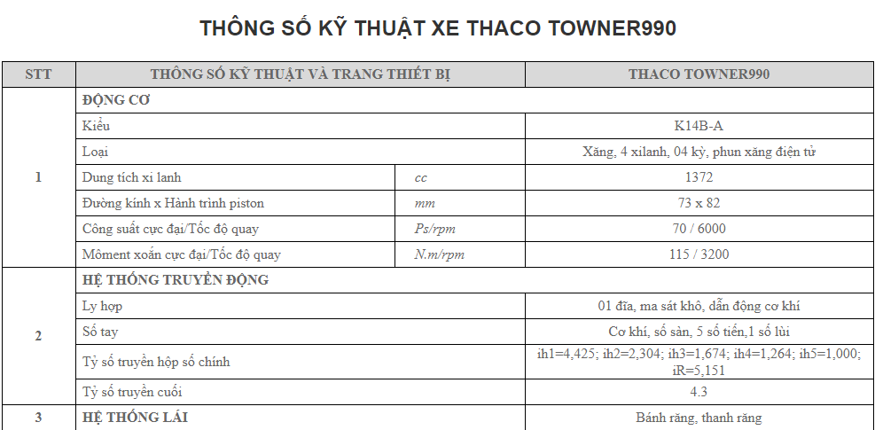 Thaco towner 990 là dòng xe nhỏ gọn máy xăng trọng tải 990kg, thùng dài 2,54m. Chất Lượng ổn định giá cả cạnh tranh, phù hợp cho khách hàng vận chuyển trong phố và thị xã
